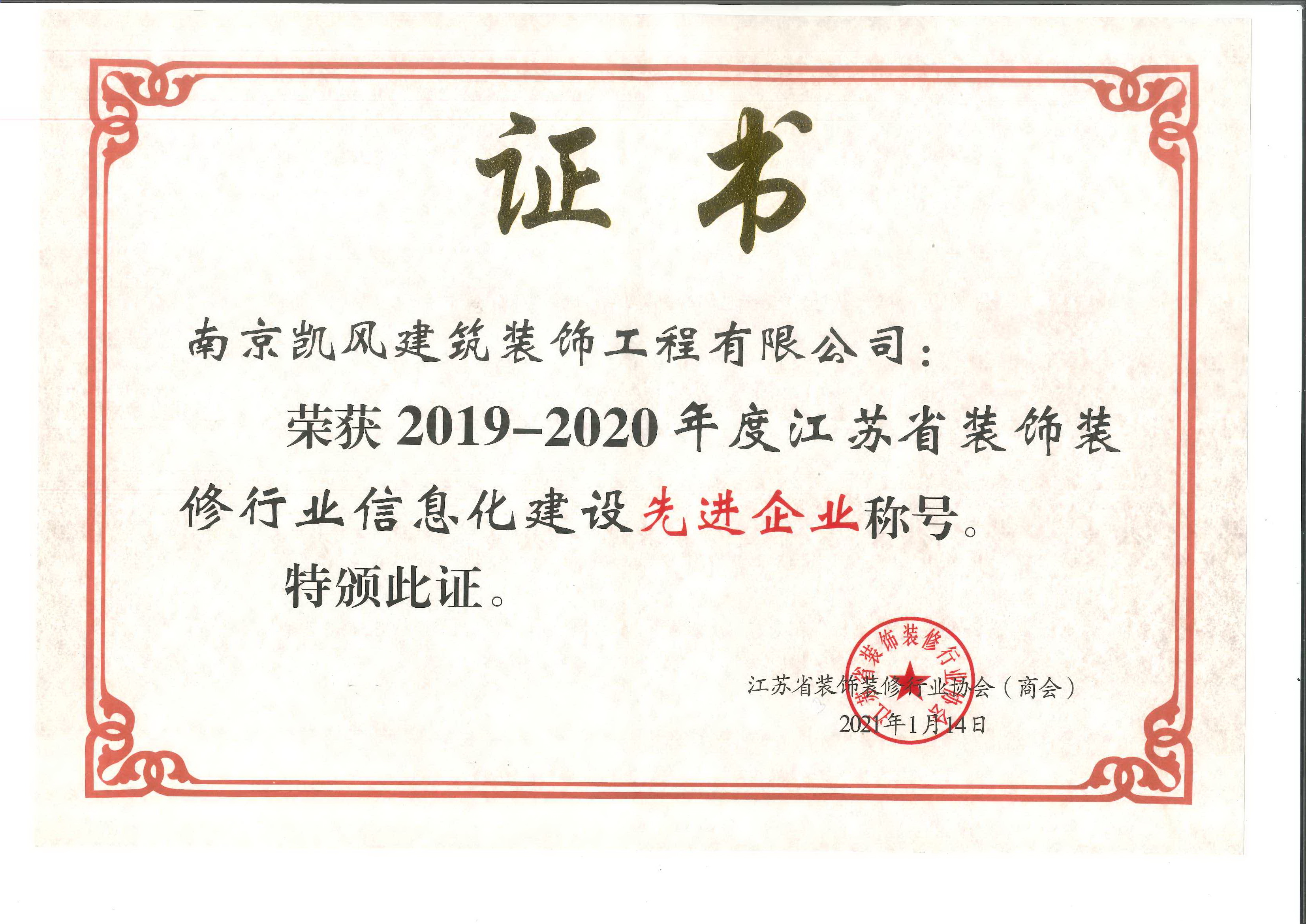 江蘇省裝飾裝修行業(yè)信息化建設(shè)先進(jìn)企業(yè)