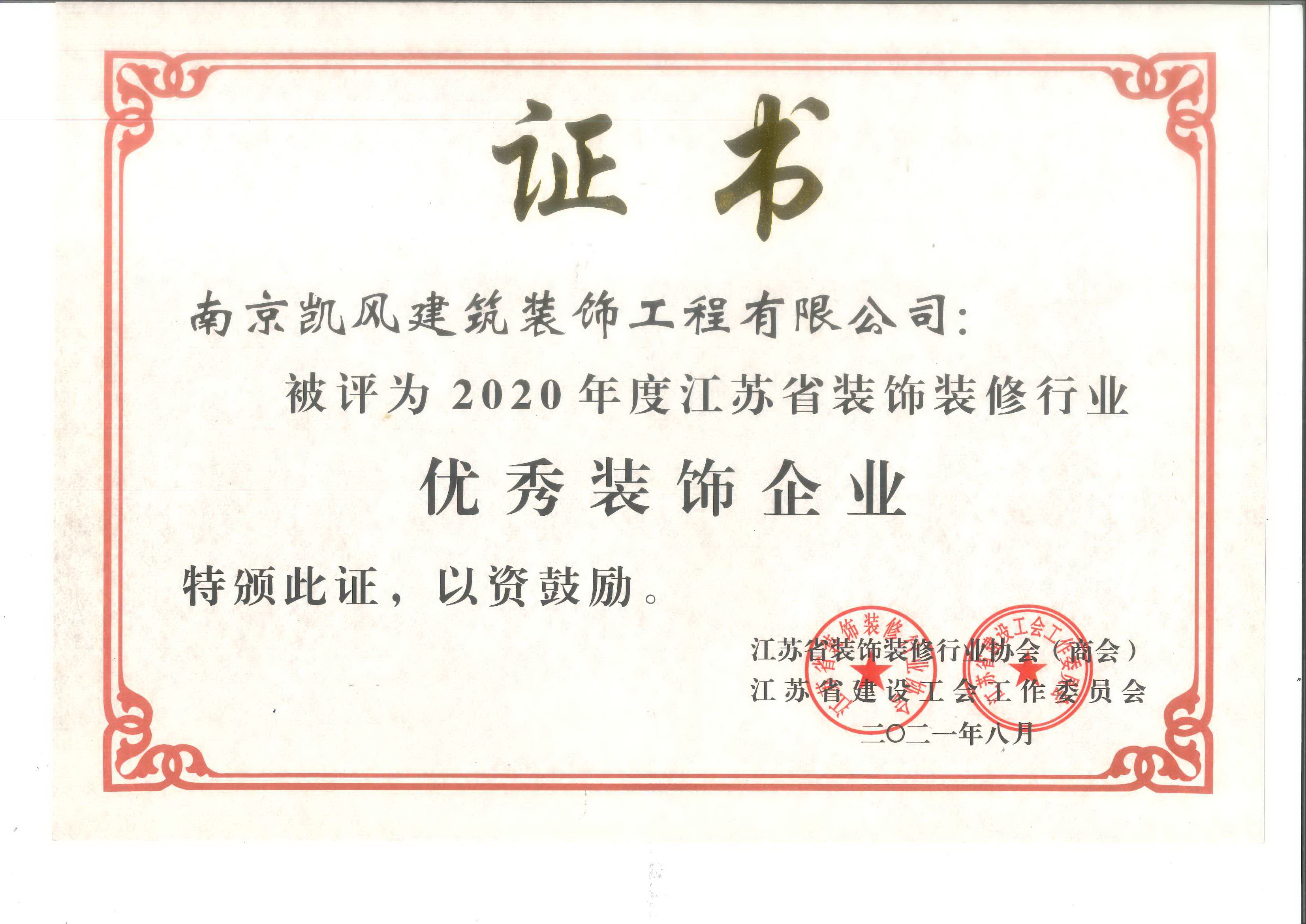 2020年度江蘇省優(yōu)秀裝飾企業(yè)